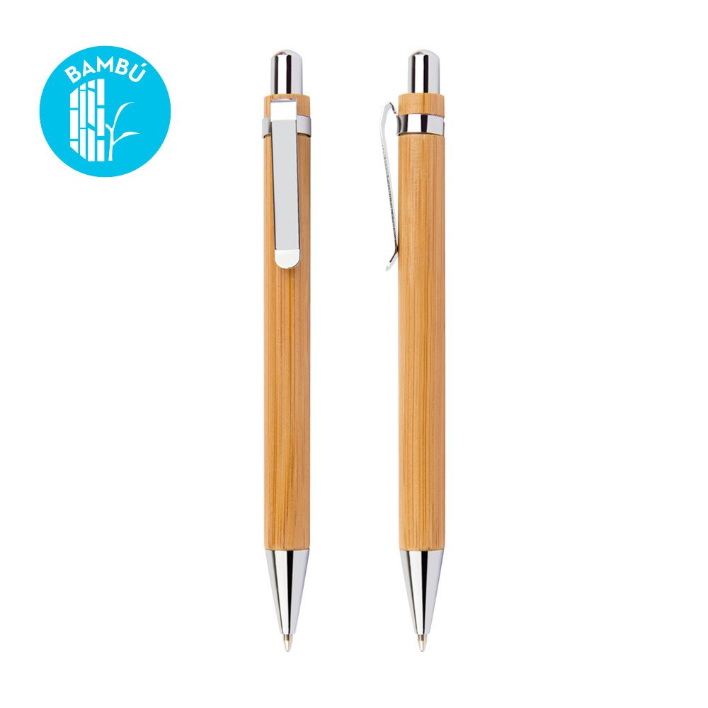 Bolígrafo ecológico elaborado en bambú. Sistema retráctil. Clip y punta metálicos. (Bolígrafo/Esfero) MATERIAL: Bambú + Metal. MEDIDAS: 13,8 cm de largo. ÁREA DE IMPRESIÓN APROXIMADA: 5,4 x 0,7 cm.