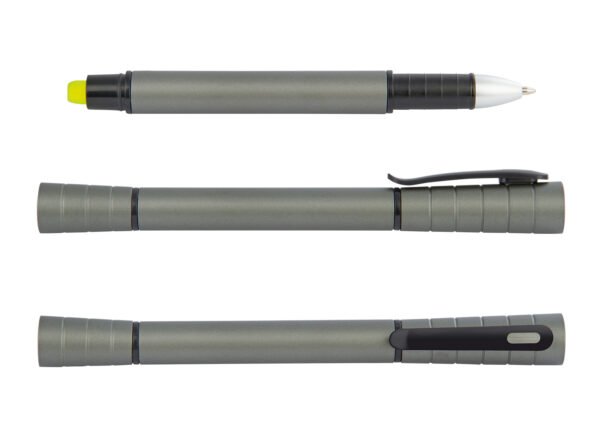 Bolígrafo con resaltador en parafina que no se seca. Doble tapa, logo a una tinta