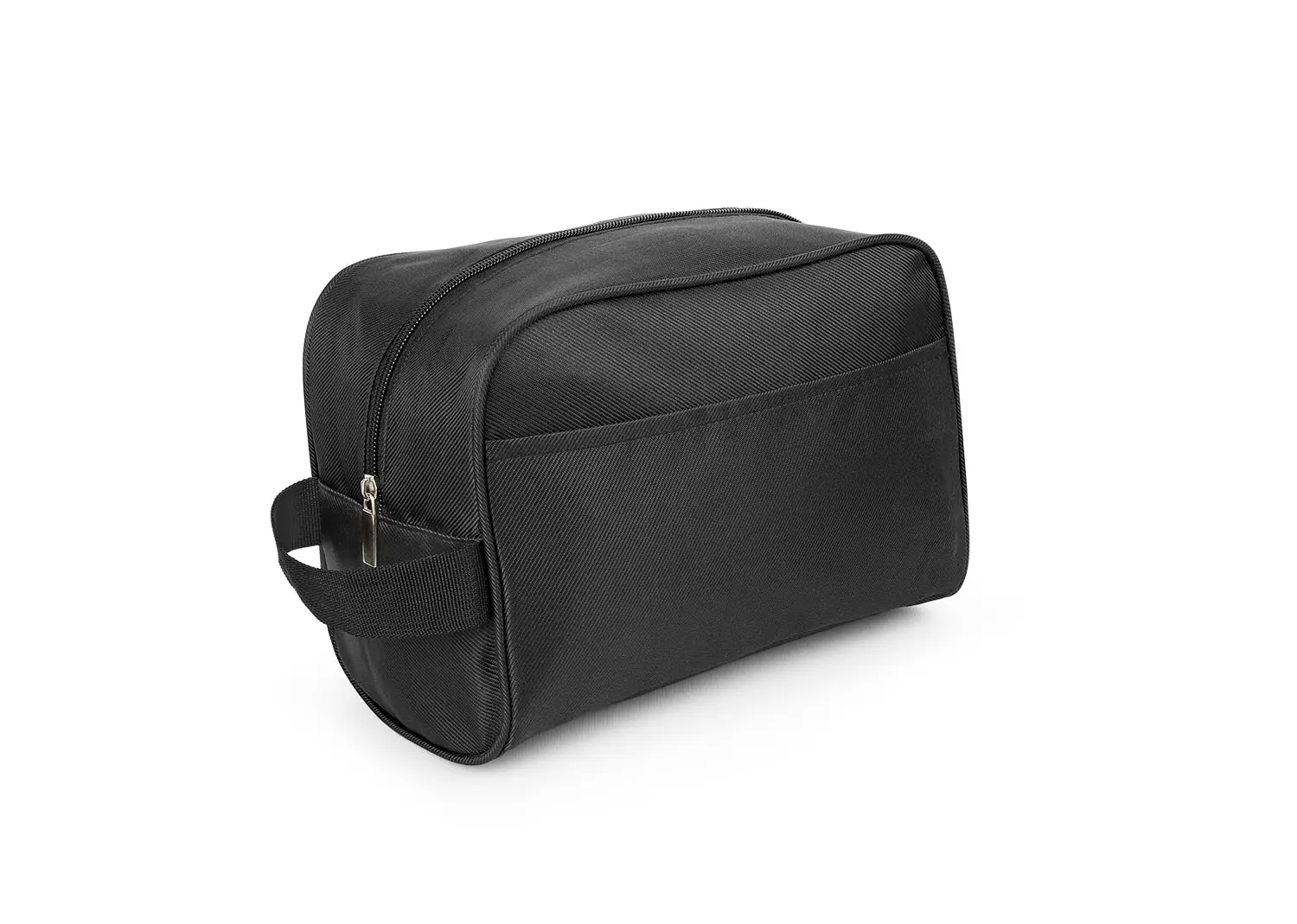 Estuche con cremallera, bolsillo frontal y agarradera lateral. Ideal para los productos de aseo personal, para viaje y/o cosméticos. MATERIAL: 600D / PVC Twill Poliéster. MEDIDAS: 27 x 18 x 12 cm. ÁREA DE IMPRESIÓN APROXIMADA: 19 x 8 cm.