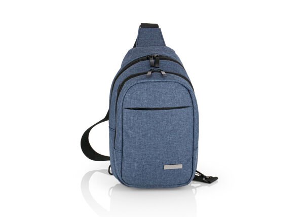 Manos libres con cargadera ajustable, bolsillo frontal, medio y principal con cremallera, placa metálica para marca en laser, compartimentos internos para organizar mejor, logo a una tinta