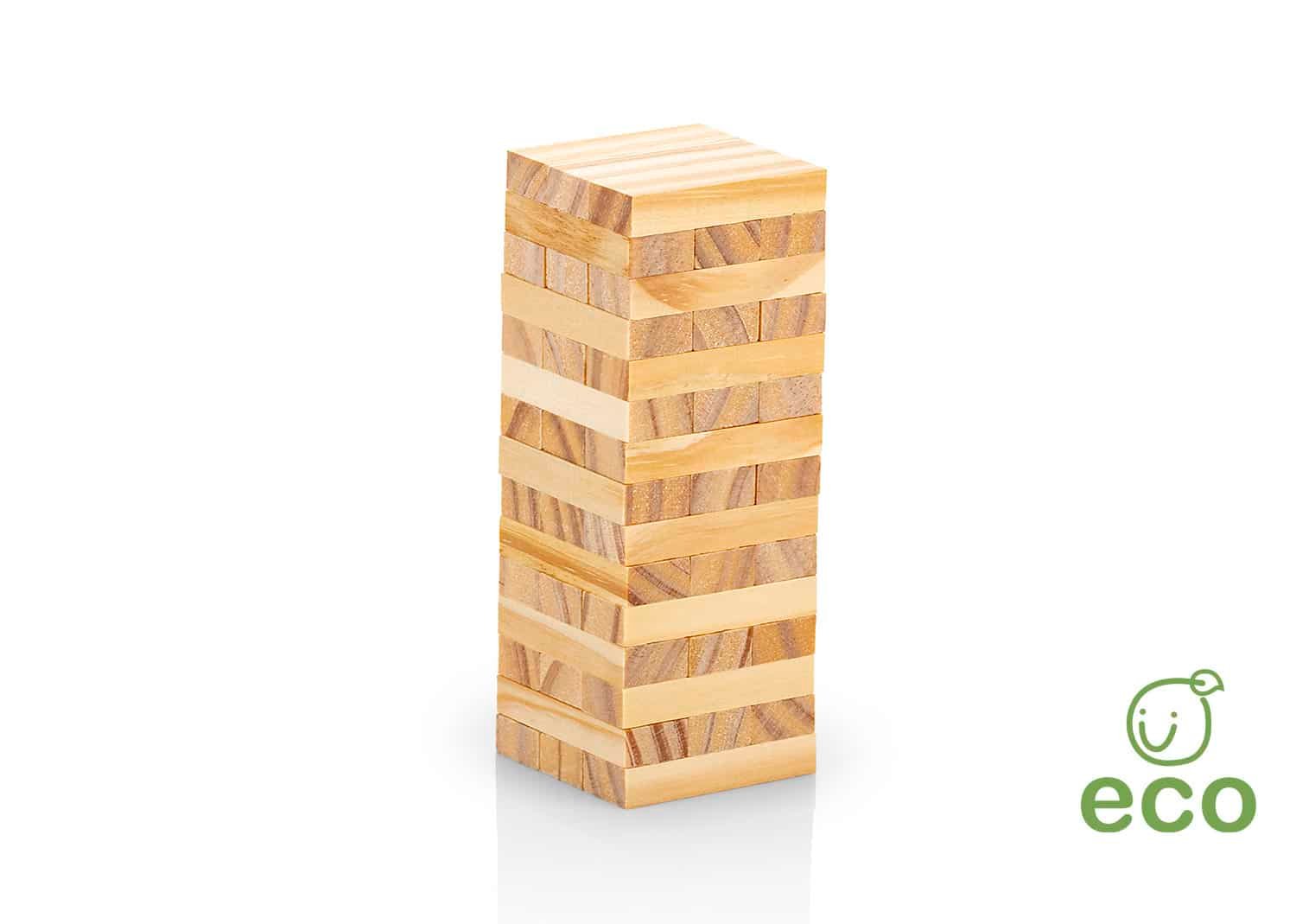 Juego de mesa clásico, que permite practicar la habilidad y equilibrio mientras se divierte, debe retirar cada el bloque y colocarlo en la parte superior. Estuche en algodón, Torre 18cm x 5cm Ficha 5cm x 1.7cm Funda 26.5cm x 12.8cm, logo a una tinta